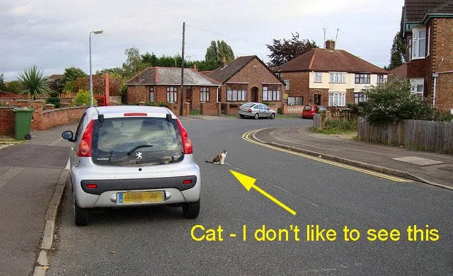 Cat on UK road. I don't like to see this because I have experienced cats being killed on roads. |